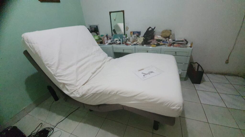 Tabung Oksigen + roda troleyWalker + tongkatKursi MandiAlat bantu memiringkan di tpt tidurElectric bedhead (bisa ditaruh diatas kasur normal)