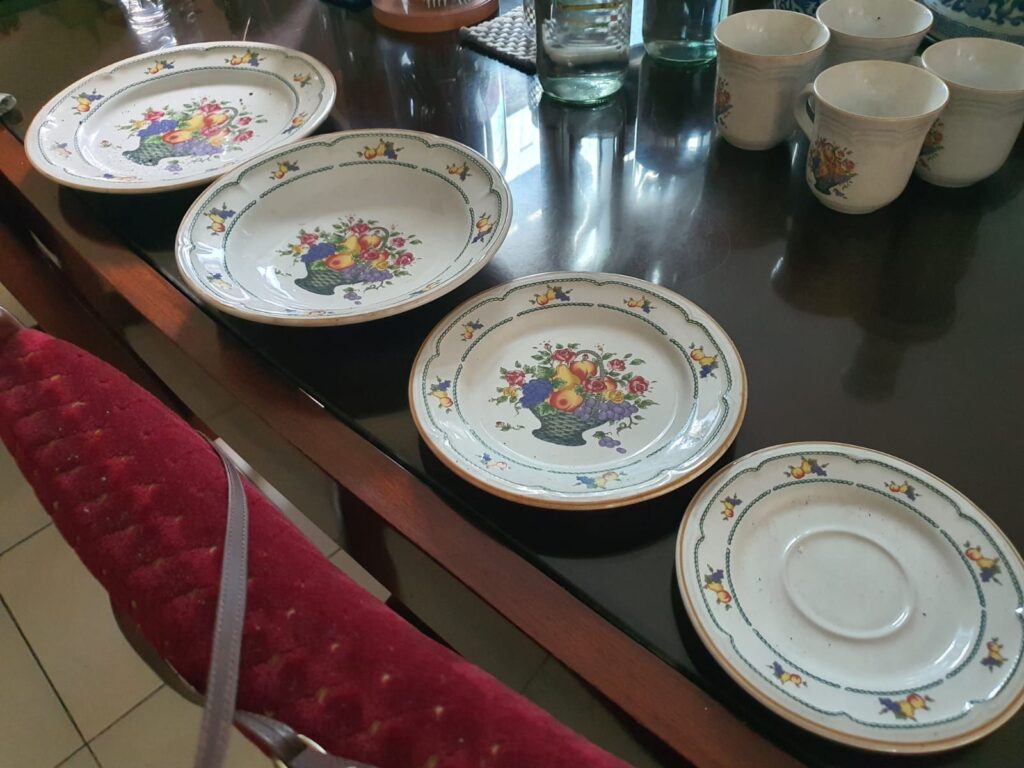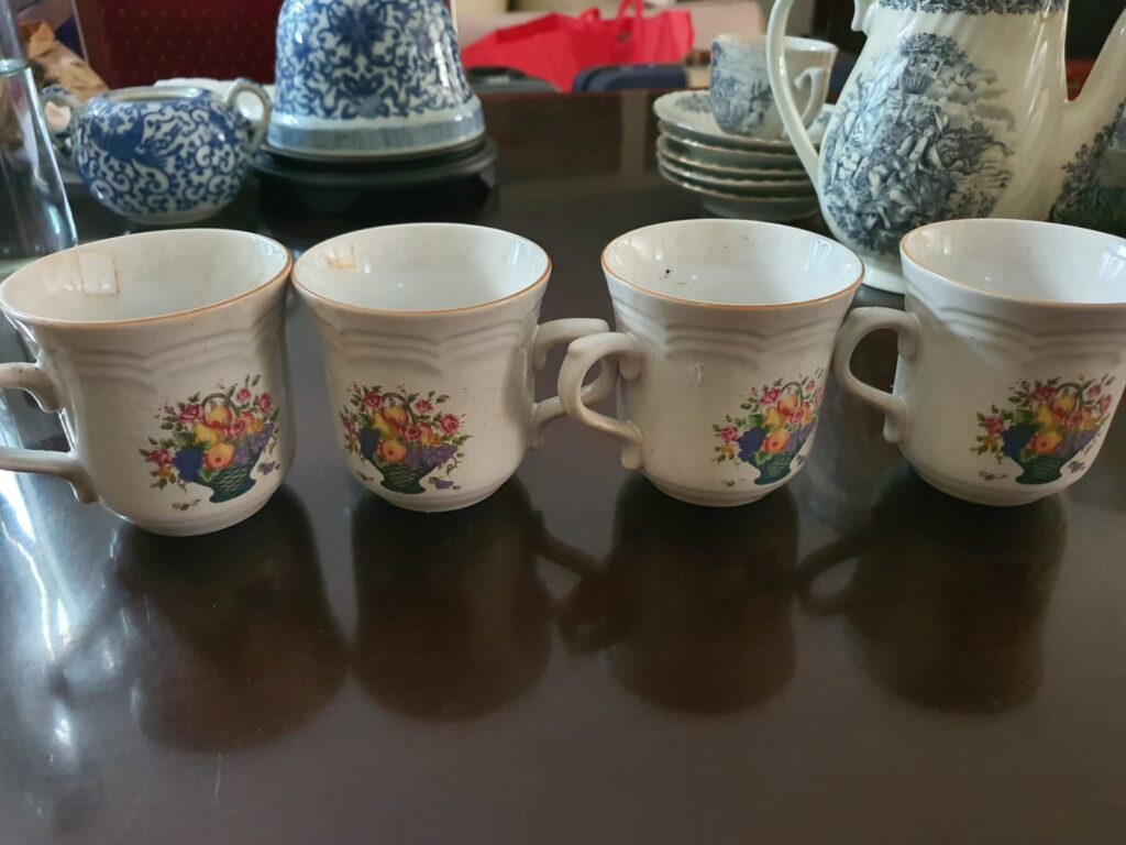 Cangkir setPiring Makan setToples biruSide dishTempat buah metalVase?Teko cangkir set jepangMerk set jepangCeramicBawah ceramicTiger ceramic figures2 jar with lidBawah jar with lidsugar potVase chineseBawah vase chineseBawah vase chineseVas hijauBawah vas hijau